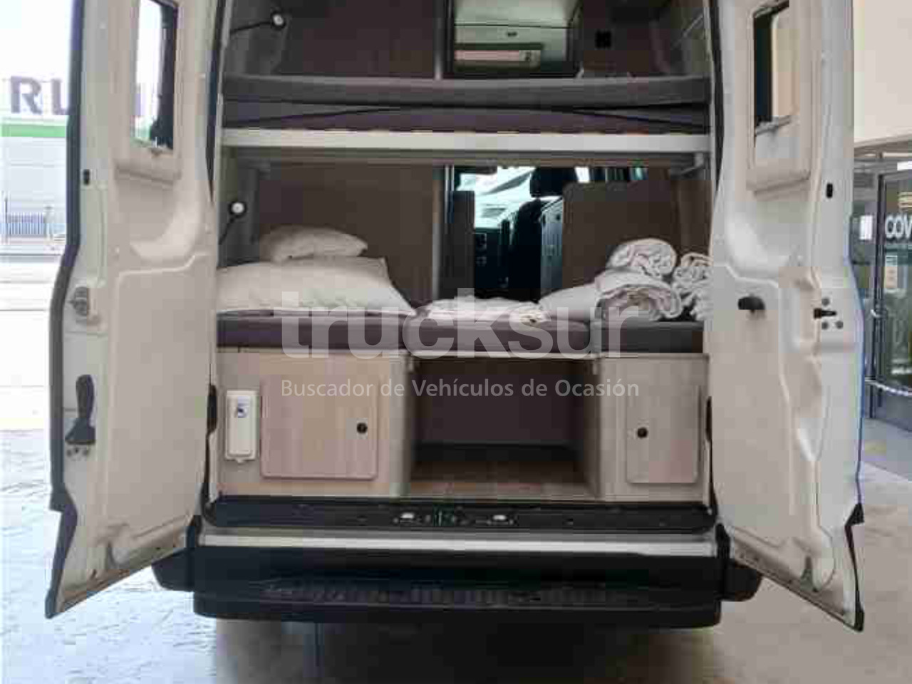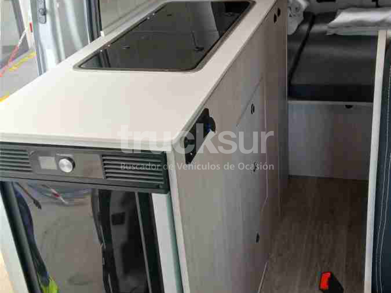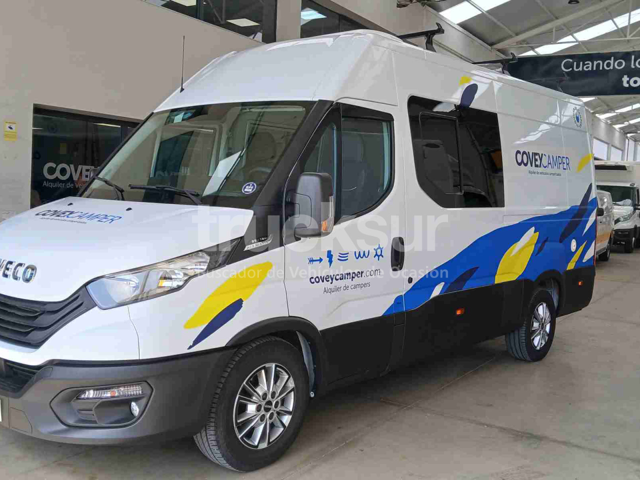 - Iveco daily camper de 4 plazas para viajar y dormir, asientos delanteros giratorios, zona salón con mesa extensible, cocina con lavadero y hornilla de dos fuegos, frigorífico con congelador, baño con ducha, lavabo y wc (potty), dos camas en litera tipo matrimonio y múltiples espacios de almacenamiento y luces con opción de carga por urb y enchufes. Calefacción estacionaria, termo agua caliente, ducha exterior, toldo gran tamaño exterior y escalón abatible acceso portón lateral. 3 claraboyas, zona salón, baño y dormitorio, y ventanas laterales y traseras, todas con mosquiteras y oscurecedores.Toldo.Placa solar y conversor de corriente