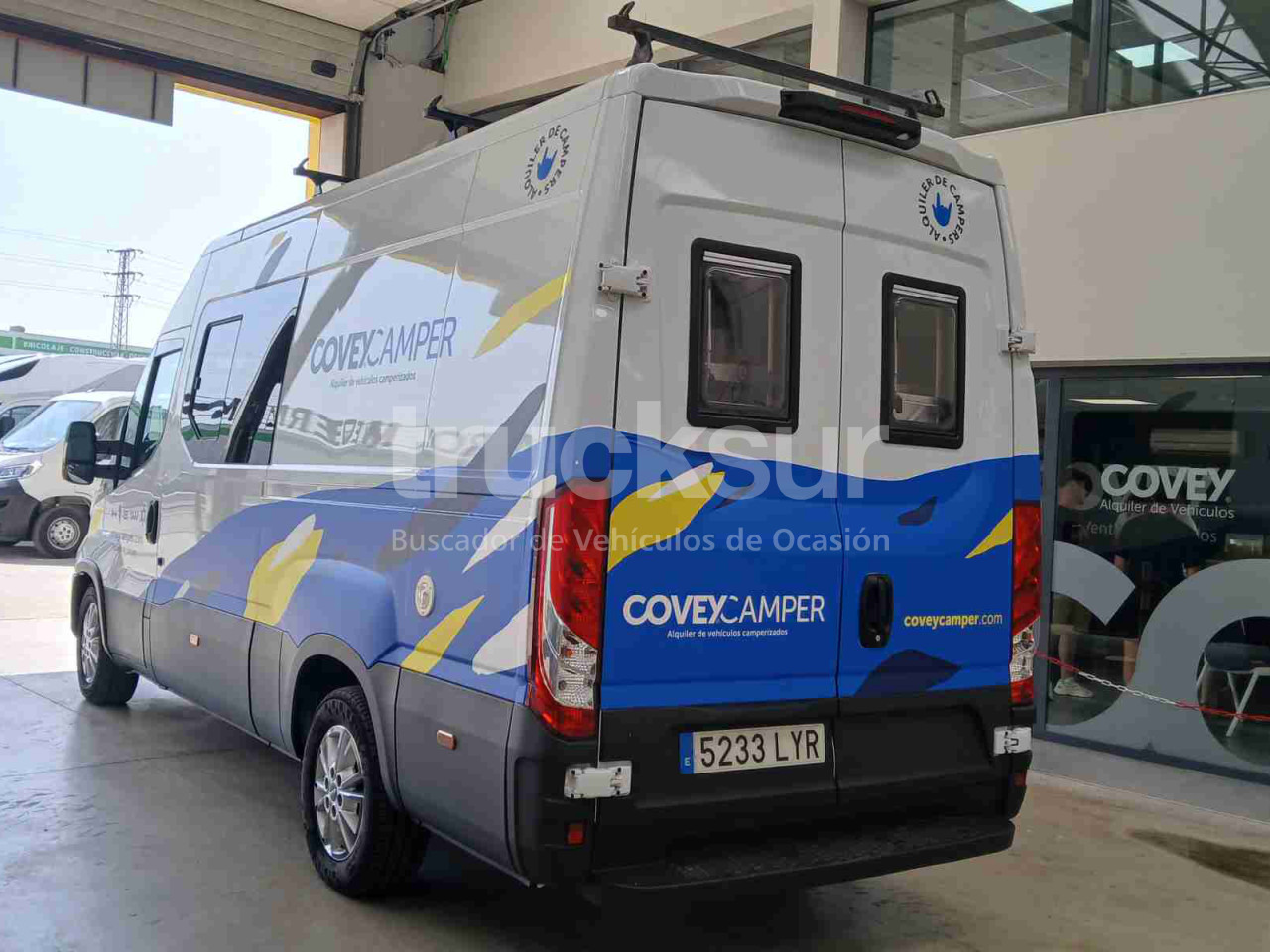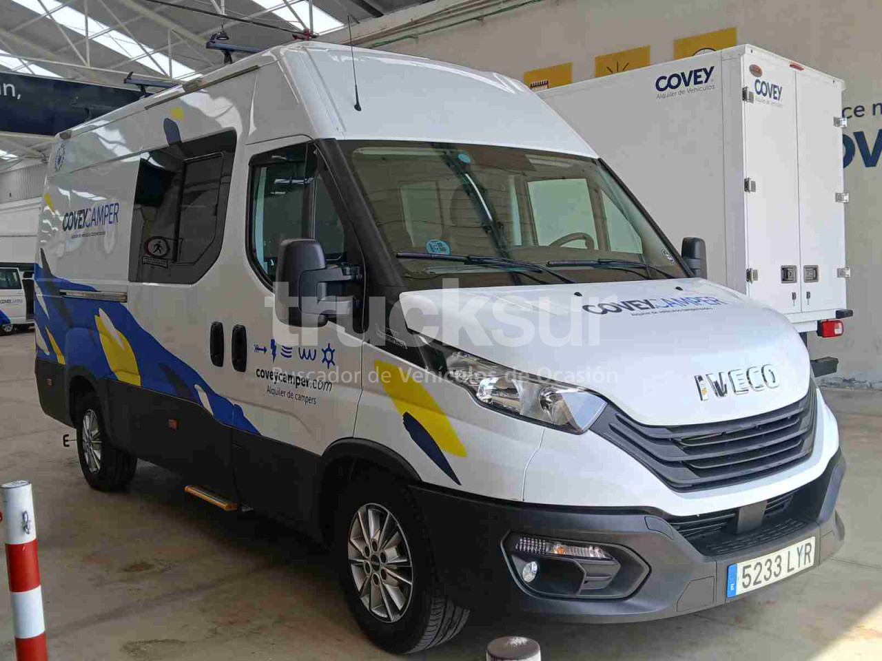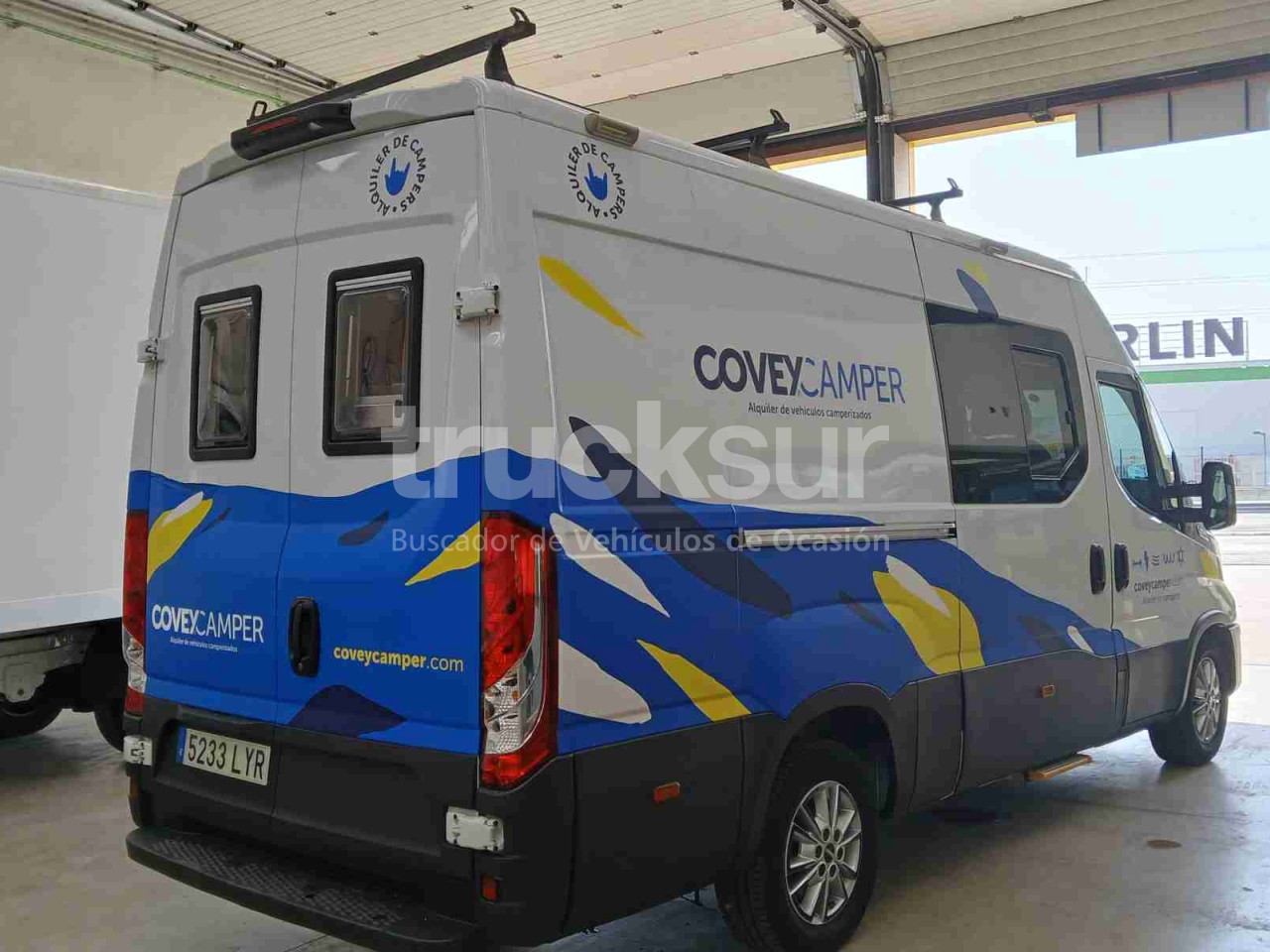 - Iveco daily camper de 4 plazas para viajar y dormir, asientos delanteros giratorios, zona salón con mesa extensible, cocina con lavadero y hornilla de dos fuegos, frigorífico con congelador, baño con ducha, lavabo y wc (potty), dos camas en litera tipo matrimonio y múltiples espacios de almacenamiento y luces con opción de carga por urb y enchufes. Calefacción estacionaria, termo agua caliente, ducha exterior, toldo gran tamaño exterior y escalón abatible acceso portón lateral. 3 claraboyas, zona salón, baño y dormitorio, y ventanas laterales y traseras, todas con mosquiteras y oscurecedores.Toldo.Placa solar y conversor de corriente
